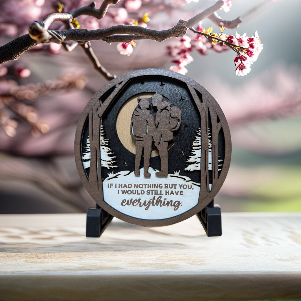 Give a gift that speaks directly to the heart, a tangible representation of the depth of your bond. This exquisite, layered wooden artwork captures a moment of serene intimacy, making it the perfect expression of unwavering love and connection. The etched words, "If I had nothing but you, I would still have everything." encapsulate the essence of true love, reminding us that the greatest treasures are the people we hold dear.